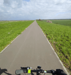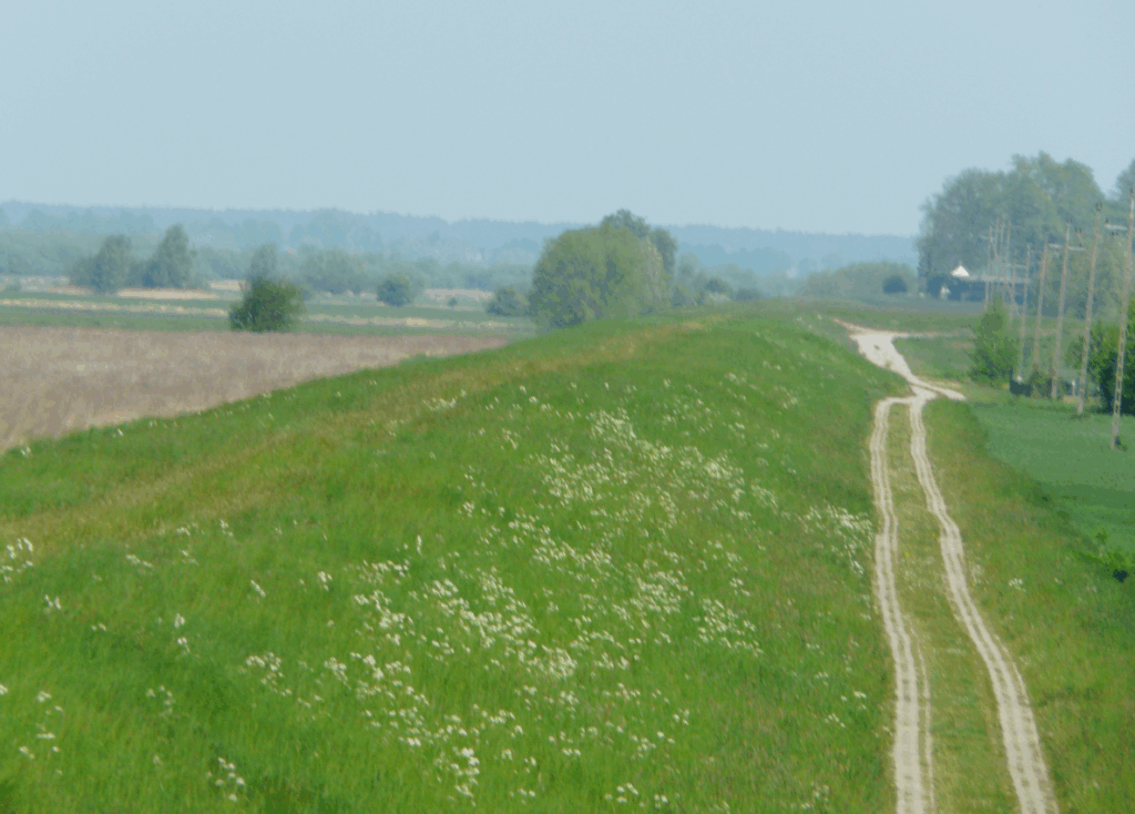 Dalszy odcinek prowadzi koroną wału przeciwpowodziowego – jednego z najszerszych i najwyższych w Polsce. To wyjątkowe miejsce do jazdy, oferujące panoramiczne widoki na dolinę Wisły, pola i łąki.