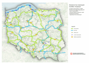 projekt Podstrategii Turystyki Rowerowej – mapa rowerowych tras EuroVelo i krajowych