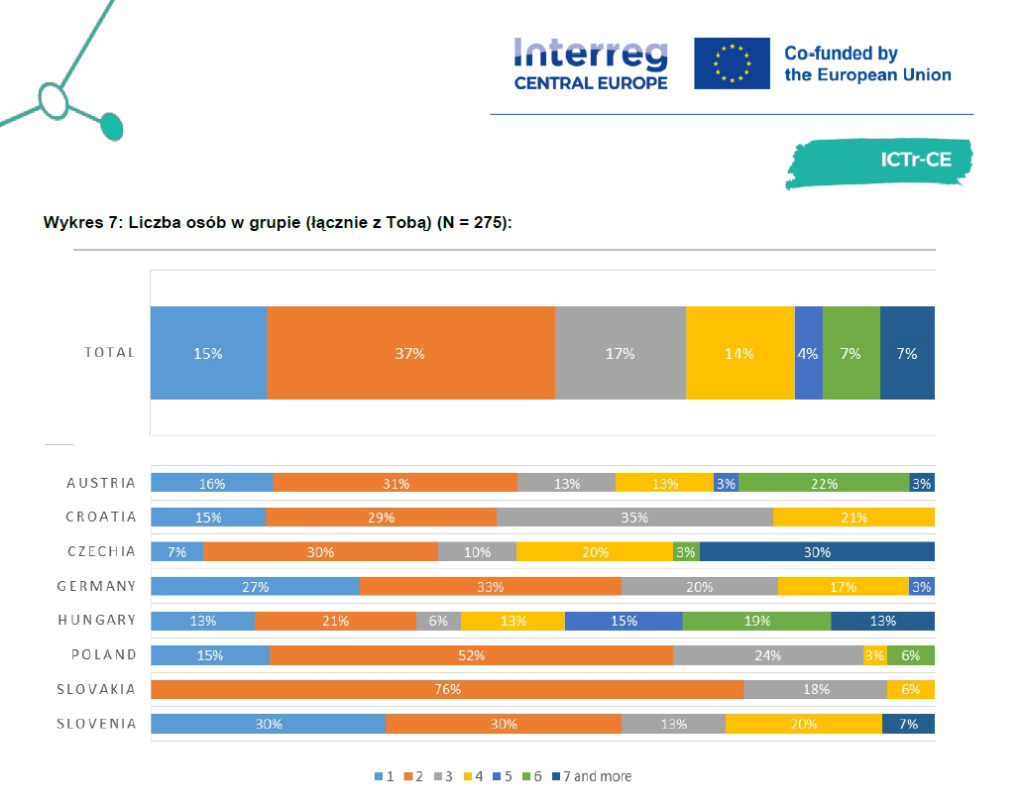 - Skład grup: 30% badanych w Polsce podróżuje z rodziną, co przewyższa średnią ogólną wynoszącą 17%.
