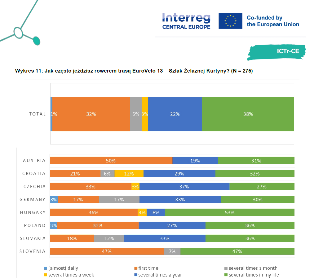Z zebranych danych wynikają następujące fakty dotyczące całej trasy EuroVelo 13: