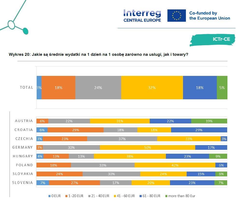 - Finanse: Średnie wydatki dzienne wynoszą od 21 do 60 EUR na osobę. 44% tych środków jest wydawane w punktach gastronomicznych.