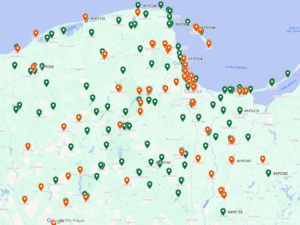 Mapa lokalizacji infomatów w województwie pomorskim