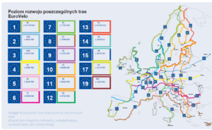 Obecnie 69% całej sieci (ponad 63 157 km) jest uznawane za trasy gotowe do użytku, co oznacza, że są one certyfikowane, oznakowane lub przynajmniej rozwinięte na poziomie regionalnym/krajowym. W porównaniu z rokiem poprzednim odnotowano wzrost stopnia zaawansowania o 2%. Mimo tych postępów, przed zarządcami tras stoi duże wyzwanie – aby ukończyć sieć do 2030 roku, tempo prac musiałoby wzrosnąć do około 5700 km nowo oddawanych odcinków rocznie.